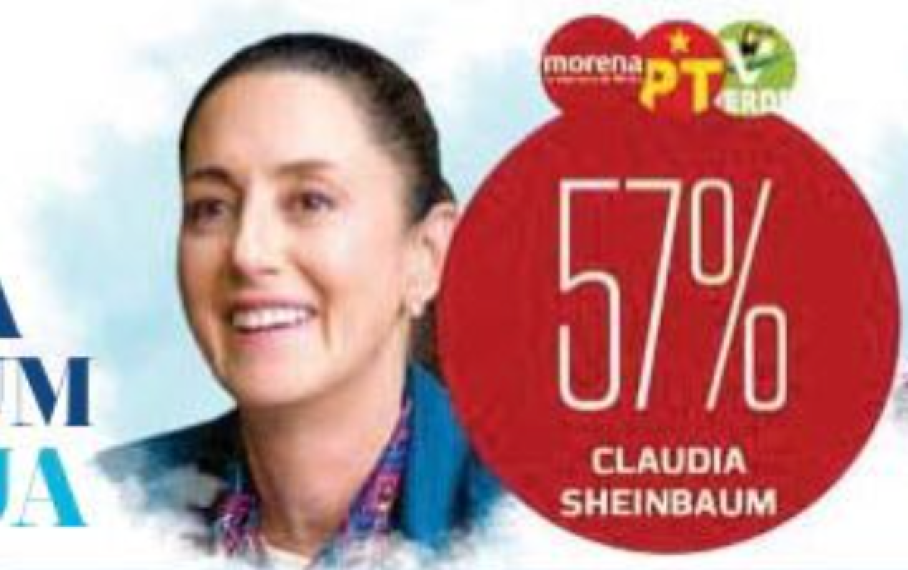 Después se preguntó́: “si el día de hoy fueran las elecciones para Presidenta o Presidente de la República, ¿por quién votaría?”, 57% dijo que por Claudia Sheinbaum; 25% por Xóchitl Gálvez; 4% por Jorge Álvarez Máynez y 14% no sabe.