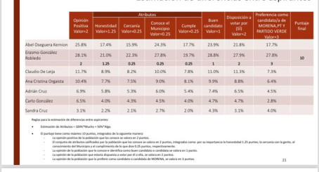 Acompañado de la presidenta estatal de Morena, Yuriria Iturbe, el delegado Mario Llergo les dio a conocer los resultados a los aspirantes que asistieron: el ganador, al sumar la totalidad de los puntos a evaluar, fue Erasmo González Robledo.