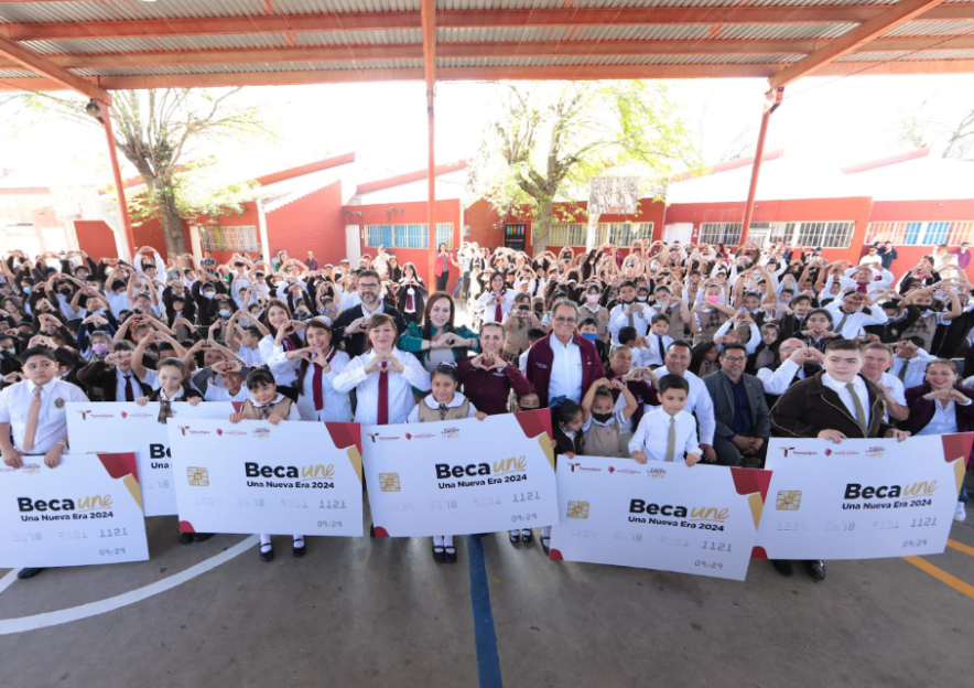 Este miércoles, la alcaldesa Carmen Lilia Canturosas Villarreal, realizó la entrega simbólica de la Beca Una Nueva Era 2024 a estudiantes de la escuela primaria “Profr. Rafael Ramírez”.