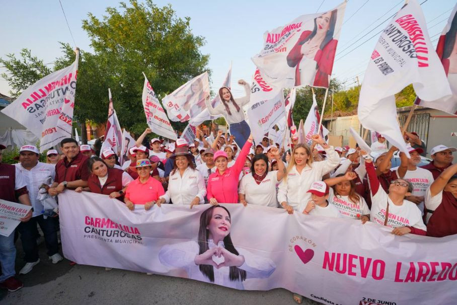 “Nuevo Laredo está contigo” fue uno de los mensajes que recibió la candidata a presidenta municipal, Carmen Lilia Canturosas Villarreal de la coalición Morena, Verde y PT durante un recorrido en la colonia Infonavit que realizó junto a Ana Laura Huerta, aspirante a la diputación local por el distrito II.