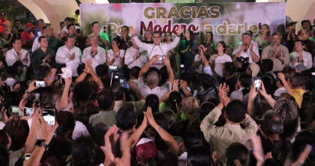 Un día después de la jornada electoral, el lunes por la noche, se realizó en la plaza Isauro Alfaro el festejo del triunfo de Morena en las urnas de Ciudad Madero.