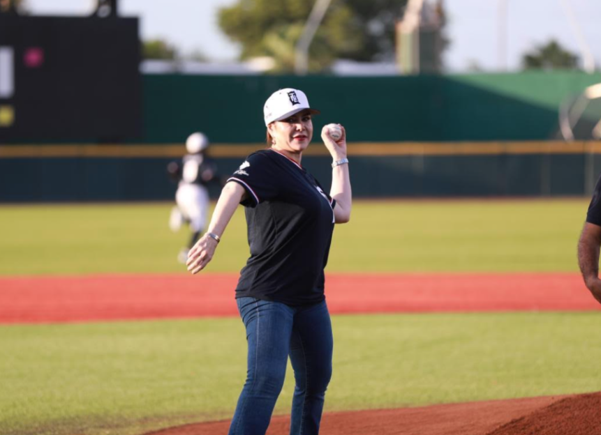 Posteriormente, la alcaldesa Carmen Lilia Canturosas Villarreal puso en juego la pelota con el primer lanzamiento y así, con casa llena, dar inicio al juego de los tecos contra Sultanes, duelo que reflejó la pasión de los neolaredenses por el rey de los deportes y el amor que sienten por pertenecer a la ciudad fronteriza.