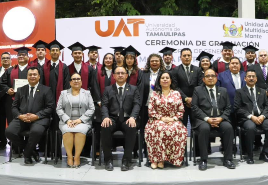 La Unidad Académica Multidisciplinaria Mante (UAM Mante) de la Universidad Autónoma de Tamaulipas (UAT), llevó a cabo la graduación de 157 estudiantes de la Generación 2020-2024 que culminaron su formación en las licenciaturas de Enfermería, Ingeniería en Sistemas Computacionales, Ingeniería Agrónoma, Contaduría Pública e Ingeniería Bioquímica Industrial, así como la Primera Generación de la Maestría en Tecnologías para el Aprendizaje.