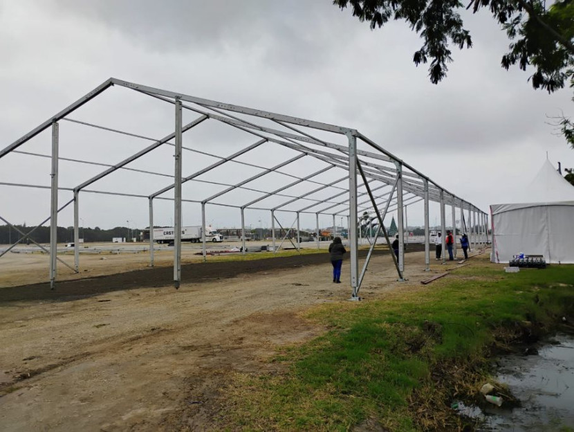 El albergue para migrantes se construye justo a las afueras de los terrenos contiguos a la feria, del Conexpo y a un costado del Puente Tampico.