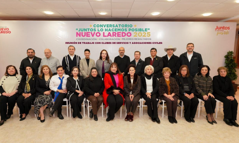 La presidenta municipal, Carmen Lilia Canturosas Villarreal, sostuvo una reunión de trabajo con presidentes y representantes de clubes de servicio y asociaciones civiles de Nuevo Laredo con el objetivo de fortalecer la colaboración y sumar esfuerzos en beneficio de la comunidad.