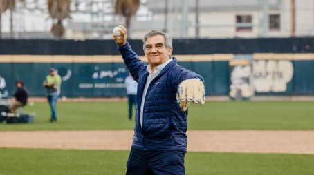 También lanzó una ‘bola rápida’ con curva desde la ‘lomita’ del parque de beisbol ‘Adolfo López Mateos’, estadio de Reynosa que también acaba de ser remodelado y donde hizo un recorrido junto a directivos del Grupo Burgos.