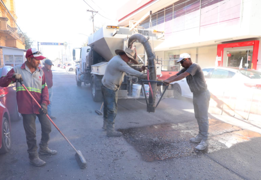 El Gobierno Municipal reafirma su compromiso de mantener en óptimascondiciones las vialidades de Nuevo Laredo e invita a la ciudadanía areportar baches a través de la plataforma del CIGA o al número 072para una atención oportuna.