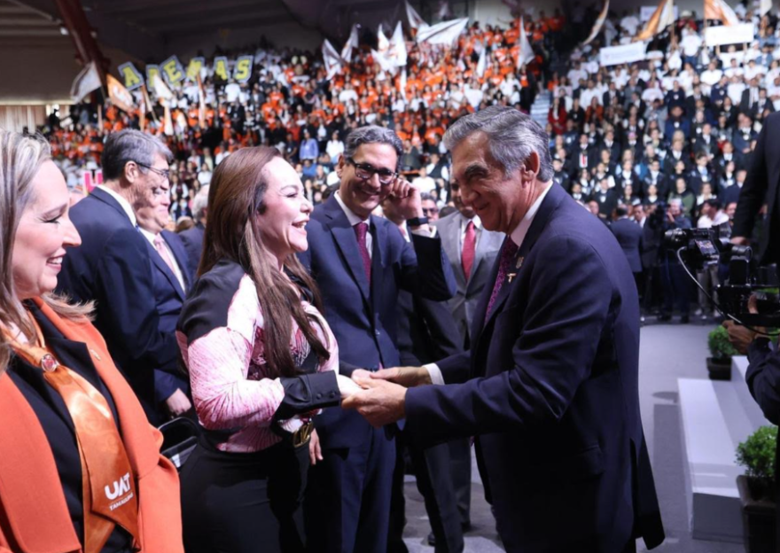 “La UAT del futuro ya está en marcha, con visión, unidad y convicción,avanzamos hacía una universidad que educa para transformar, queinspira para servir, guiada por sus valores, nos consolidamos como unainstitución que honra su pasado, entiende su presente y construye, contodas y todos, un futuro más justo y digno para Tamaulipas”, afirmó elrector.