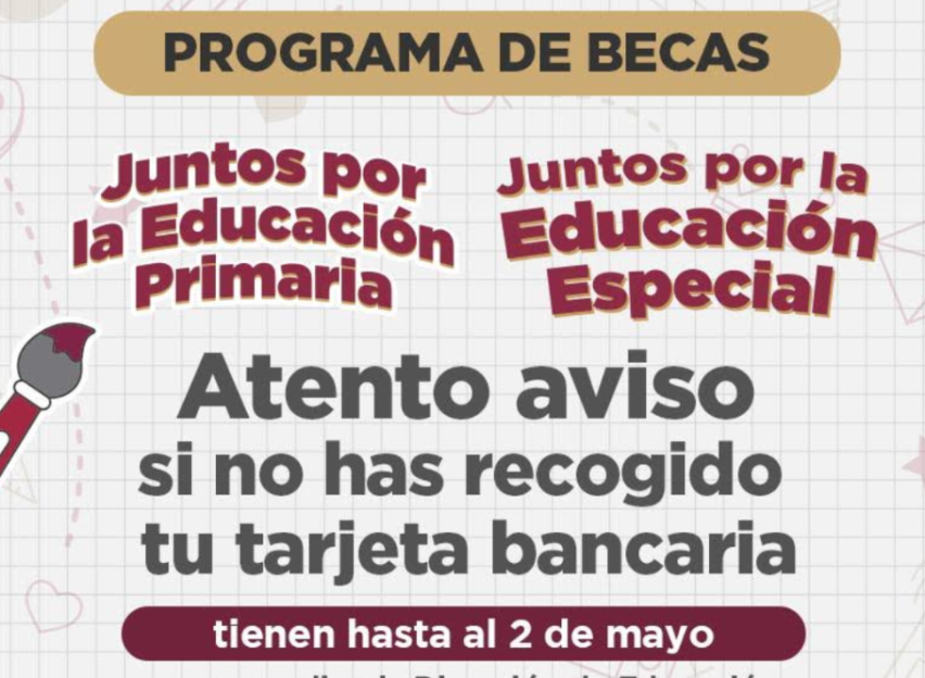 La Dirección de Educación del Gobierno Municipal informa a los padresde familia que aún no han recogido la tarjeta bancaria correspondientea la Beca de Educación Primaria, que tendrán una última oportunidadpara hacerlo.