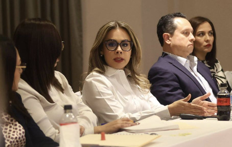 Carmen Lilia llegó acompañada de su hermano, el diputado federal Carlos Canturosas. La alcaldesa de Nuevo Laredo se sentó en primera fila junto a los presidentes municipales de Reynosa y Altamira, Carlos Peña y Armando Martínez.