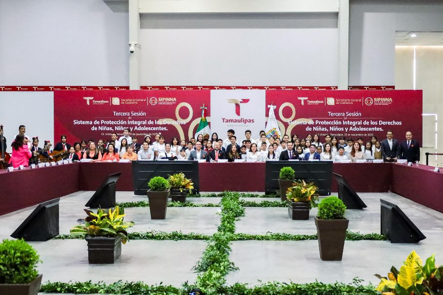 En representación del gobernador Américo Villarreal Anaya, el secretario general de Gobierno, Héctor Joel Villegas González, presidió la Tercera Sesión del Sistema Estatal de Protección Integral de los Derechos de Niñas, Niños y Adolescentes (SIPINNA), así como la Toma de Protesta de la Tercera Generación del OPINNA, en un evento realizado en las instalaciones del Polyforum de esta capital.