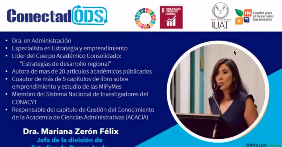 Cabe destacar que la exposición del tema, fue conducido por la Dra. YolandaMendoza Cavazos, Secretaria Ejecutiva del Comité para el Desarrollo Sustentable de laUAT, quien destacó por su parte, el interés de promover en este programa los objetivos dedesarrollo sostenible de la Agenda 2030 de la Organización para las Naciones Unidas.