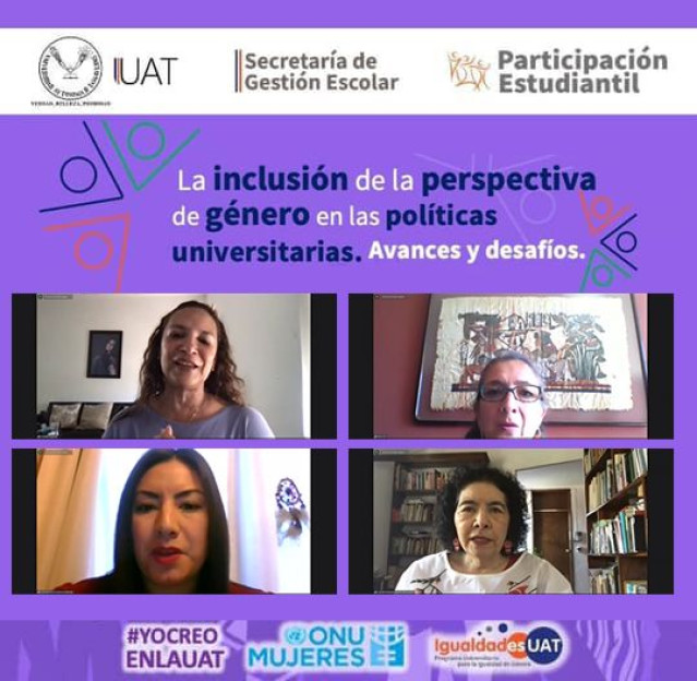 En el evento presentado en línea, participaron importantes expositoras del país, quienes compartieron experiencias y conocimientos en torno a la incorporación de políticas de género en las instituciones de educación superior y que han permitido impulsar temas de igualdad y equidad de género como parte del proceso formativo de los estudiantes. .