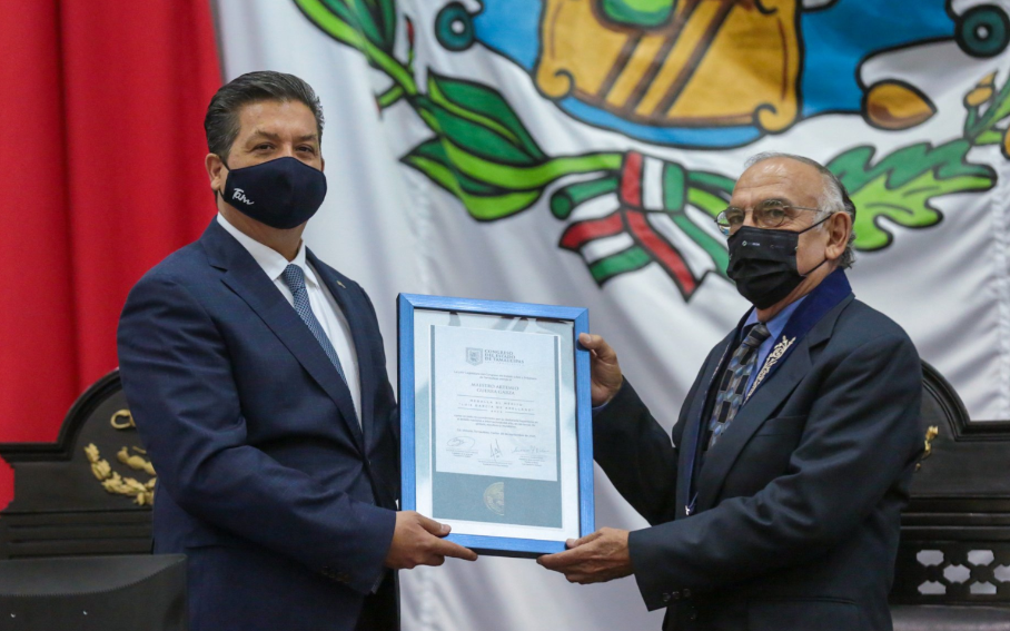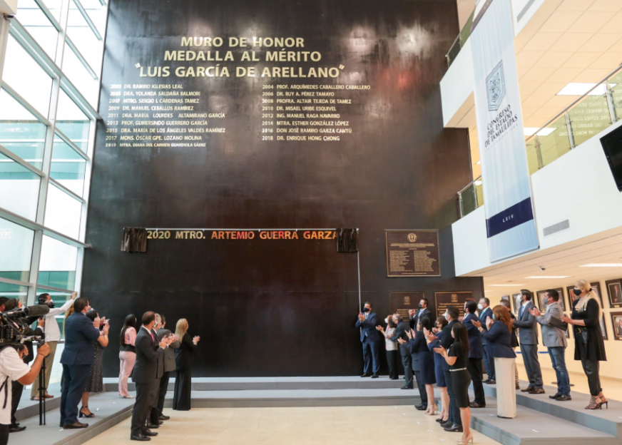 El maestro Artemio Guerra Garza, recibió la medalla al mérito Luis García de Arellano y se inscribió su nombre, en el muro de honor del Poder Legislativo del Estado.