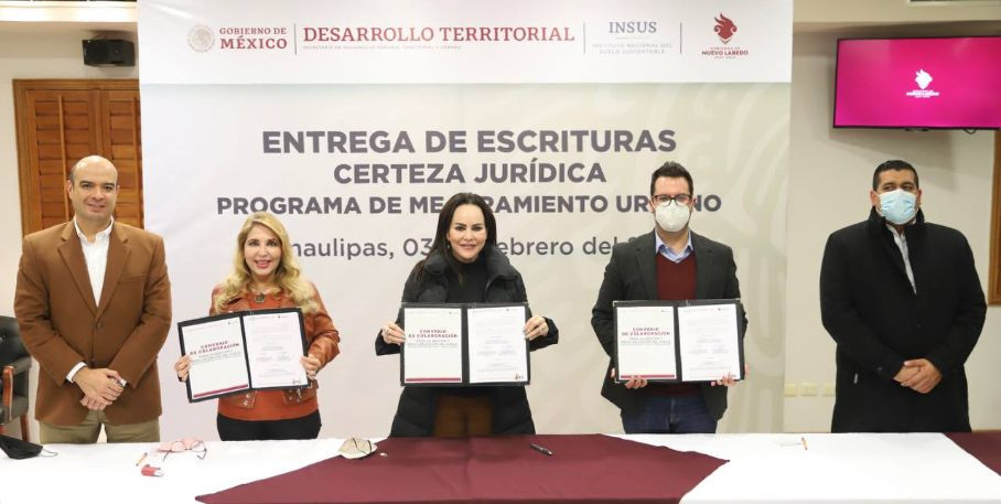 Con el fin de facilitar a las familias neolaredenses los trámites de impuestos y derechos municipales para obtener la certeza jurídica a través de la escritura de propiedad, el Gobierno Municipal firmó un convenio de colaboración con el Instituto Nacional de Suelo Sustentable (INSUS).