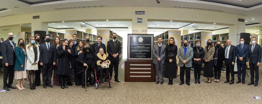 Las actividades continuaron en la Biblioteca Central del Campus Victoria, donde el Rector develó la placa con el nombre del C. P. Enrique Carlos Etienne Pérez del Río, alusiva a este recinto universitario que se ubica en el primer piso del edificio Centro de Gestión del Conocimiento.
