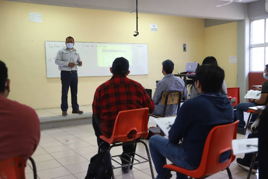 Este sábado inició el Programa Municipal de Capacitación Industrial del que fueron parte más de 40 personas quienes están aprendiendo las especialidades de montacarga, técnico en electricidad y soldadura en un horario de 9:00 de la mañana a 2:00 de la tarde en las instalaciones del Colegio Nacional de Educación Profesional Técnica (CONALEP).