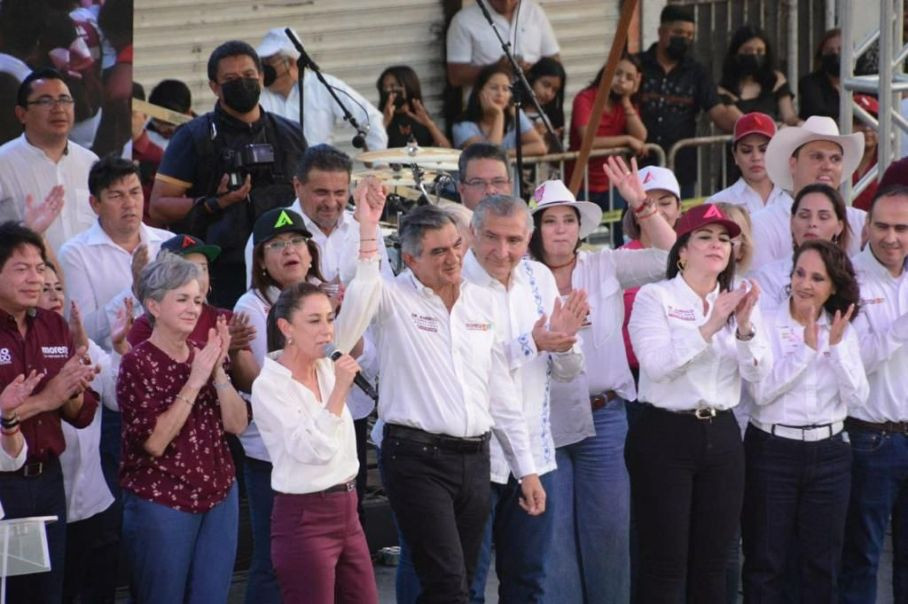 Por su parte, Claudia Sheinbaum, militante referente de la cuarta transformación en el país, aquí al acompañar al doctor Américo Villarreal dijo que “quedan unos días nada más para que acabe este régimen de corrupción, de privilegios, de amenaza y de uso de la política para beneficio de unos cuantos”.