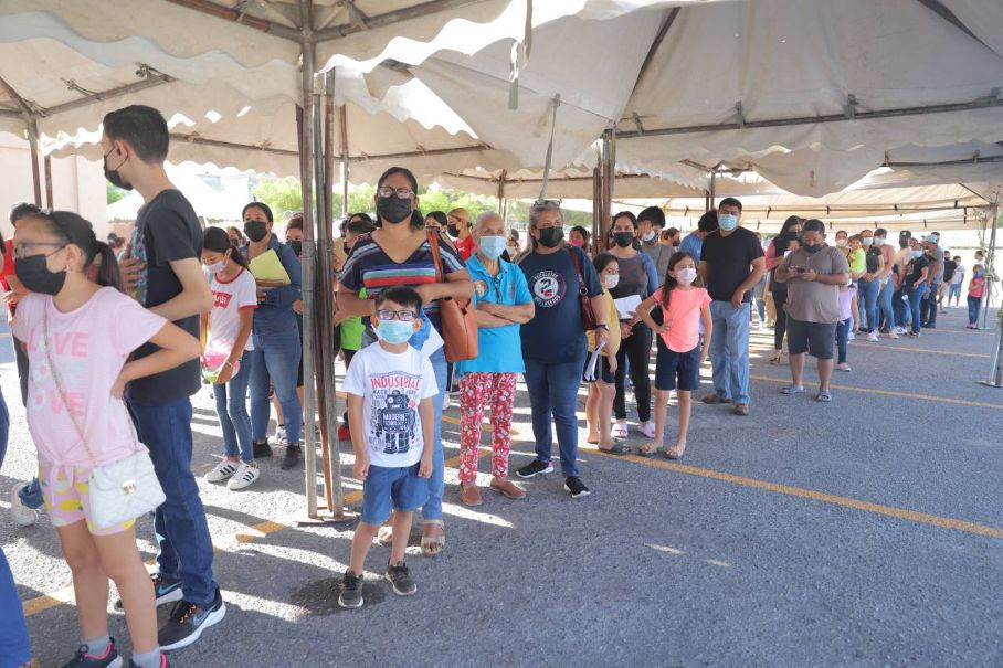 -Los ciudadanos fueron trasladados de la sala Sergio Peña a Laredo, Texas en donde se les aplicó la dosis