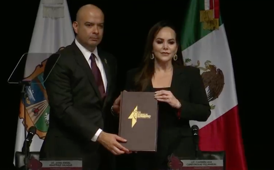 Ante un auditorio compuesto por clase politica, representantes de sectores productivos y de sociedad, Carmen Lilia ponderó que hace 11 meses 'iniciamos juntos una nueva era pueblo y gobierno.