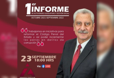 Siguiendo con cuestiones vinculadas a Morena, sorprende que el diputado local plurinominal de ese Partido, ARMANDO ZERTUCHE ZUANI anuncie que rendirá su Primer Informe de Actividades Legislativas el viernes 23 de septiembre a las 18:00 horas.