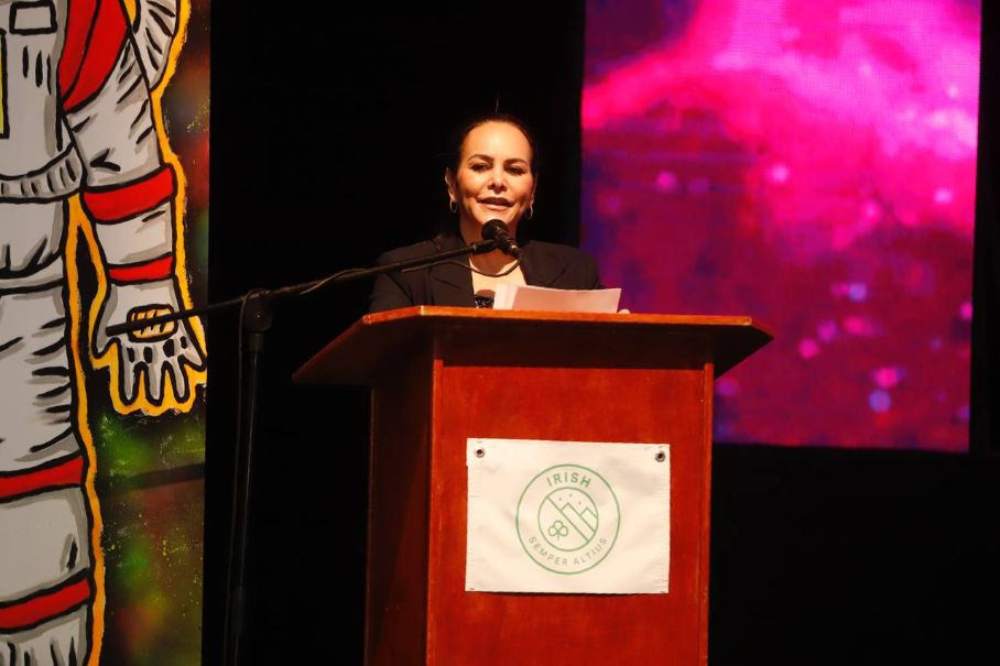 En el marco del noveno Congreso IUVE "Despegando hacia el éxito", una iniciativa organizada por el Colegio Irlandés con apoyo del Gobierno Municipal, la presidenta municipal dialogó con estudiantes de diferentes preparatorias que se dieron cita en este recinto.