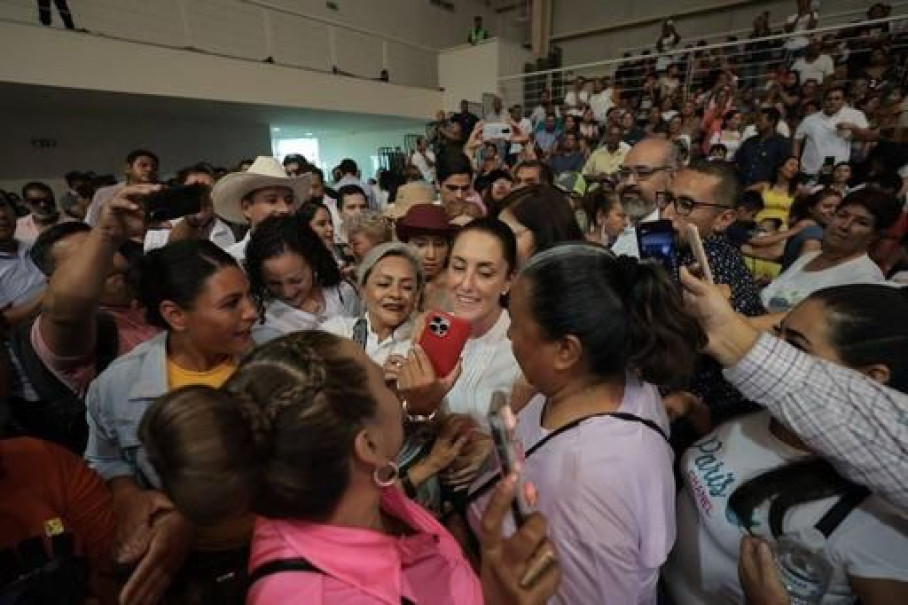 A su llegada, Claudia Sheinbaum militantes y simpatizantes de la región la recibieron con música, aplausos, pancartas y porras a través de las cuales le mostraron su apoyo en el camino hacia la defensa de la Cuarta Transformación.