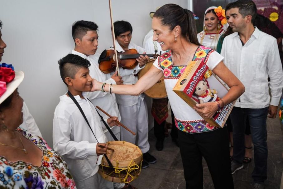 A su llegada, Sheinbaum Pardo fue testigo de la alegría del caribe mexicano con la presencia de dos parejas de baile de la Asociación de Coreógrafos Folkloristas de México, A. C. Delegación Quintana Roo, quienes portaban trajes típicos costumbristas de la región e indumentaria tradicional Maya Pax, además le hicieron entrega de una muñeca personalizada de edición especial con vestimenta del estado.
