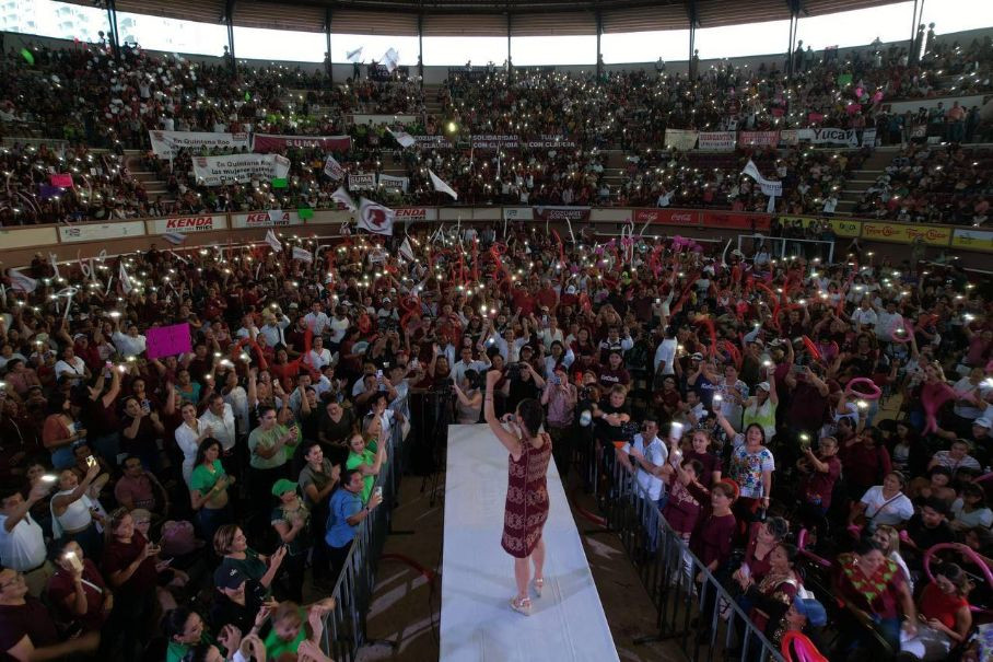 Al comienzo del evento, mujeres representantes de Quintana Roo, Yucatán y Campeche, mostraron su apoyo al reconocer la trayectoria de científica, política y de luchadora social de Claudia Sheinbaum, ‘’sabemos que usted nos representa de una forma tan grande a las mujeres’’, señalaron