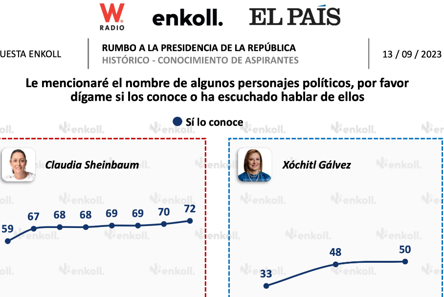 La morenista aventaja a la senadora del PAN por 21 puntos, de acuerdo con la reciente encuesta de Enkoll difundida éste jueves por el diario 'El País'.