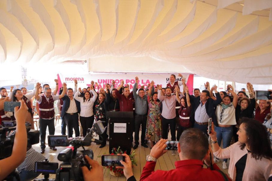 Morelia.- Claudia Sheinbaum Pardo sigue sumando simpatías a lo largo y ancho del país, tal es el caso de diputados, liderazgos, así como la dirigencia estatal de Morena en Michoacán, quienes en conferencia de prensa anunciaron su respaldo al proyecto de unidad de la Coordinadora de Defensa de la Cuarta Transformación.