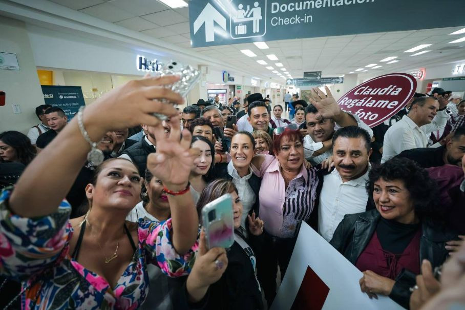 Torreón, Coahuila.- En un ambiente de auténtica alegría, Claudia Sheinbaum Pardo fue recibida por simpatizantes de Morena de Coahuila y Durango a su llegada al Aeropuerto Internacional Francisco Sarabia en la ciudad de Torreón, donde la música y las porras adornaron su llegada a la entidad.