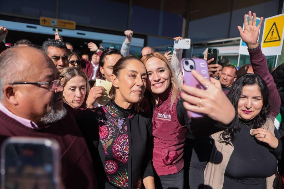 Claudia Sheinbaum llega a Aguascalientes con el objetivo de encabezar un encuentro con militantes y simpatizantes del estado en la Plaza principal Benito Juárez del municipio de Jesús María a las 11:00 horas.