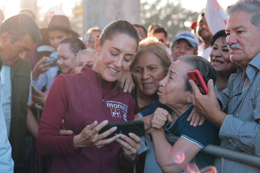 Sheinbaum, estuvo acompañada de figuras políticas estatales de los tres institutos políticos, pues antes de llegar al estrado principal caminó por una valla humana saludando y tomándose las respectivas fotos.