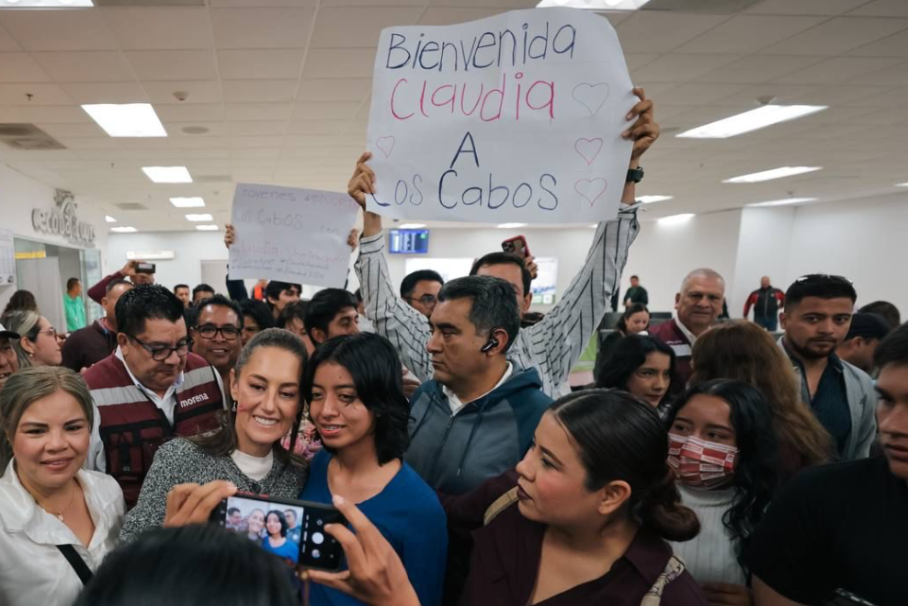 San José del Cabo, Baja California Sur.- En un ambiente de mucho ánimo Claudia Sheinbaum fue recibida en Baja California Sur, donde militantes le mostraron su apoyo entre abrazos, porras, aplausos y sonrisas.