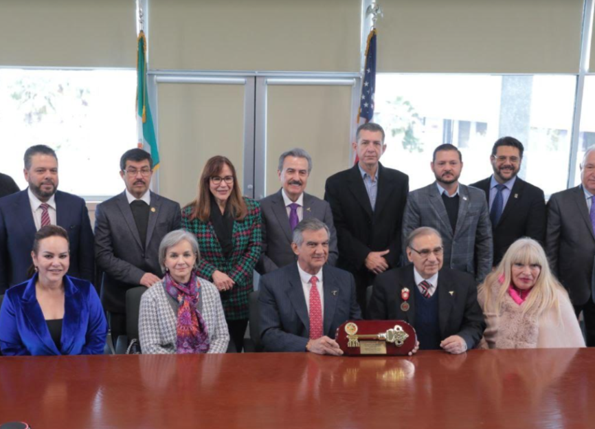 El mandatario estatal recibió esta distinción de las manos del alcalde de Laredo, Texas, Víctor Treviño quien mencionó la dedicación que ha tenido para fortalecer el Comercio Exterior. Por su parte, el gobernador Américo Villarreal Anaya, acompañado de su esposa la presidenta del Sistema DIF Estatal, María Santiago de Villarreal señaló la importancia de la colaboración binacional y de trabajar con una misma visión humanista. “Nos sentimos muy complacidos cuando nos reunimos para ver por el beneficio de nuestras dos sociedades y el progreso que podemos tener, estoy seguro que si seguimos trabajando en el mismo rumbo podremos lograr grandes resultados en el crecimiento y desarrollo entre nuestras dos naciones y nuestros dos estado”, dijo Villarreal Anaya, gobernador de Tamaulipas. La alcaldesa, Carmen Lilia Canturosas, quien estuvo acompañada de su esposo Óscar Mario Hinojosa Ramírez, destacó el liderazgo que ha tenido el mandatario estatal, quien como nunca ha promovido la relación binacional para crear oportunidades de crecimiento.