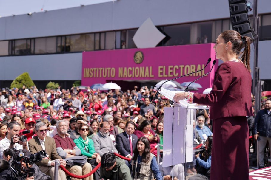 Afirmó que, en esa lucha, la democracia es una causa fundamental del movimiento y ante las puertas del INE, rememoró batallas históricas como la “no reelección”, hasta el “voto por voto, casilla por casilla” que fue símbolo de la 4T.