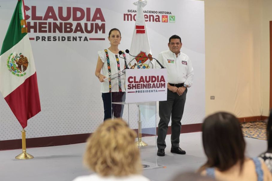 En conferencia de prensa, Claudia Sheinbaum estuvo acompañada de Javier May Rodríguez, candidato a la gubernatura de Tabasco, quien destacó que la visita de la abanderada de la colación ‘’Sigamos Haciendo Historia’’ a la Presidencia de la República como un hecho histórico que marca el avance de la 4T en Tabasco.
