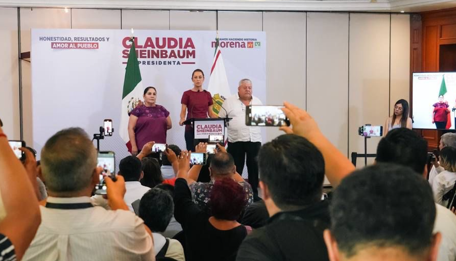 Claudia Sheinbaum, estuvo acompañada de los candidatos de la 4T al Senado de la República, Claudia Tello Espinosa y Manuel Huerta Ladrón de Guevara.