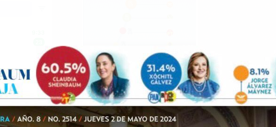 Claudia Seinbaum, candidata de la Coalición 'Sigamos Haciendo Historia' se mantiene al frente en los indicadores que reflejan la Intención de Voto de los mexicanos de acuerdo con un estudio difundido por el Diario El Heraldo.