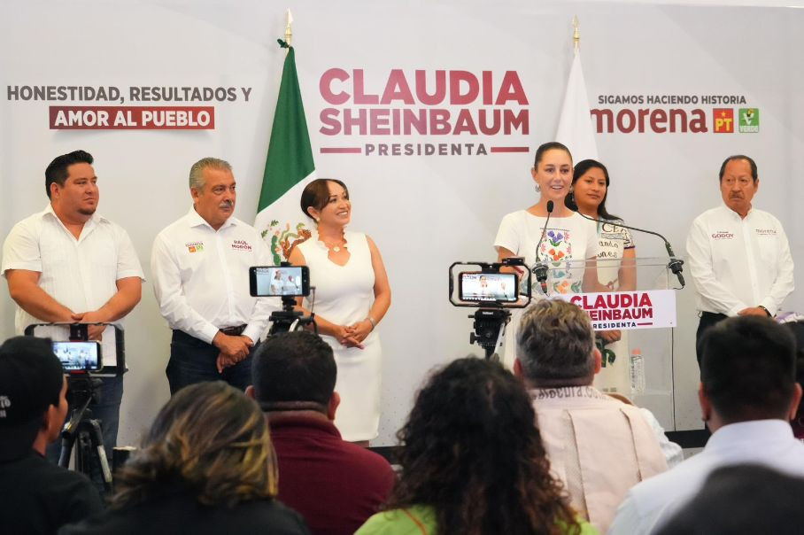 En conferencia de prensa, Claudia Sheinbaum estuvo acompañada de Celeste Ascencio, candidata al Senado por el Estado de Michoacán; Raúl Morón, candidato al Senado por el Estado de Michoacán; Leonel Godoy Rangel, candidato a Diputado Federal por el distrito 1; Itzé Camacho, candidata a Diputada Local por el distrito 24 y Manuel Esquivel Bejarano, candidato a presidente Municipal de Lázaro Cárdenas.