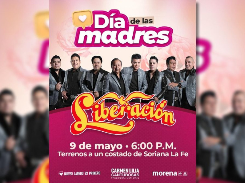 Las mamás de Nuevo Laredo podrán disfrutar del grupo “Liberación” que pondrá a bailar a las asistentes con canciones como “Ese loco soy yo”, “Cómo estás tú”, “Con el corazón en la mano”, entre otras de sus reconocidos temas