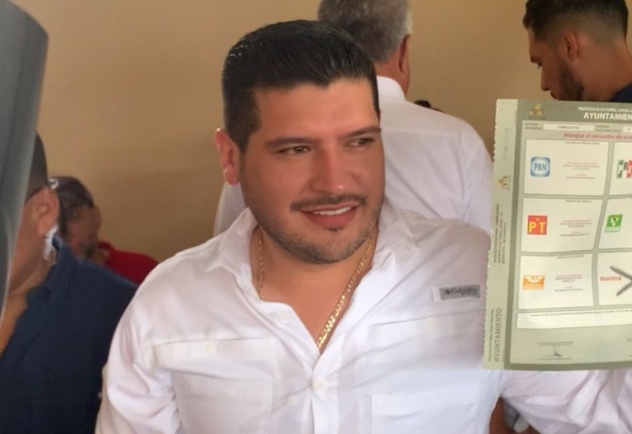 El candidato acudió las casilla 2064 ubicada en la colonia Las Arboledas acompañado de sus padres y hermanos.