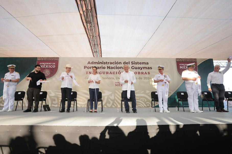 A la inauguración de obras del Sistema Portuario Nacional, también estuvieron presentes, Alfonso Durazo Montaño, Gobernador Constitucional del Estado de Sonora; el Almirante José Rafael Ojeda Durán, Secretario de Marina (SEMAR); Juan Pablo de Botton Falcón, Subsecretario de Egresos de la Secretaría de Hacienda y Crédito Público (SHCP); el Vicealmirante José Daniel Reséndiz Sandoval, Comandante de la Región Naval 6; el Contralmirante Víctor Manuel Ozuna Díaz, Director General de Fomento y Administración Portuaria; el Contralmirante Rogelio Bello Aguilar, Director General de ASIPONA Guaymas y Karla Córdova González, Presidenta Municipal de Guaymas