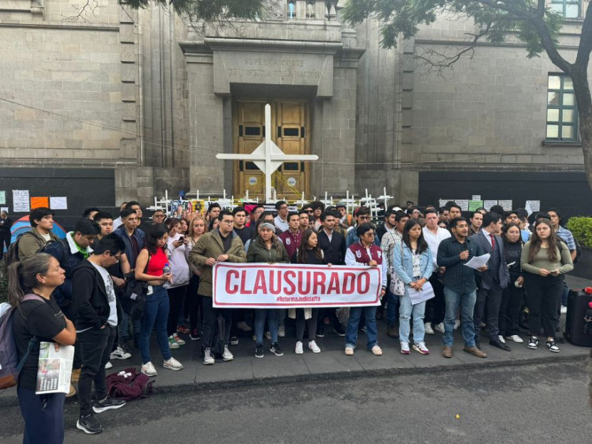 Hoy, más de 100 jóvenes estudiantes realizaron una clausura simbólica de la Suprema Corte de Justicia de la Nación, exigiendo una reforma al Poder Judicial y denunciando el paro ilegal de labores por parte de sus ministros.