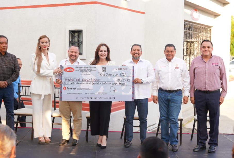 Como parte del convenio entre el Gobierno Municipal y la Cámara Mexicana de la Industria de la Construcción (CMIC), el presidente de la asociación, Pablo Eduardo Haro Panduro, entregó un cheque valuado en 852 mil 331 pesos a la alcaldesa Carmen Lilia Canturosas Villarreal y a la presidenta del Sistema para el Desarrollo Integral de la Familia (DIF), Claudette Canturosas Villarreal, para fortalecer los programas y acciones del DIF.