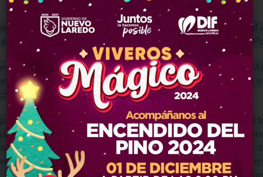 La magia de la Navidad llega a Nuevo Laredo con el tradicional encendido del pino navideño, que se llevará a cabo este domingo 1 de diciembre a las 6:00 de la tarde en el Parque Viveros.