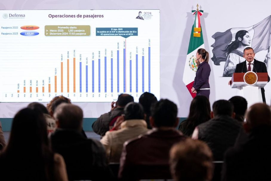 “Lo importante aquí es que sigue creciendo el número de pasajeros, siguen creciendo las rutas nacionales e internacionales de diversas aerolíneas, es el principal aeropuerto de carga en el país y como se planeó en el 2024 ya no requiere presupuesto del presupuesto de la federación para poderse mantener y operar, sino que ya es, no solamente sustentable, sino que además tiene ingresos adicionales (...)