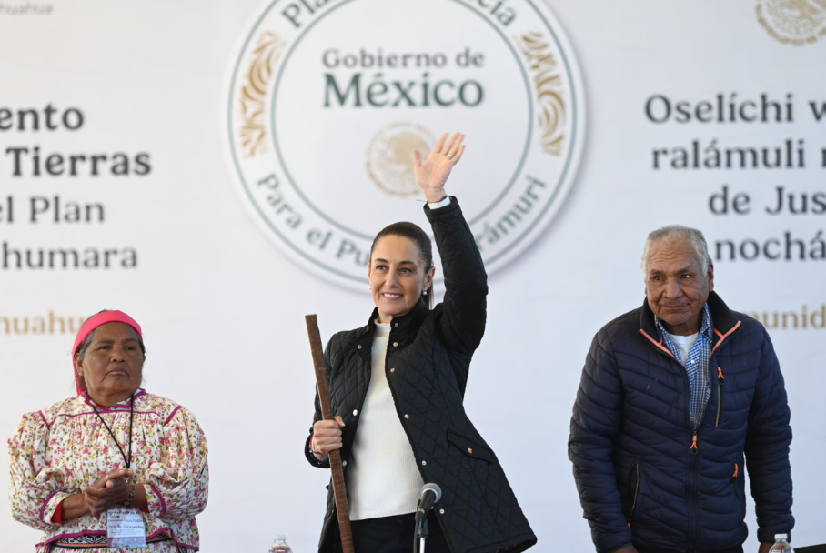 El gobernador tradicional de la Comunidad de Mogótavo, Luis González Rivas, reconoció a la Presidenta de México, Claudia Sheinbaum Pardo, por ser la primera Jefa del Ejecutivo Federal en visitar esta zona de la Sierra Tarahumara.