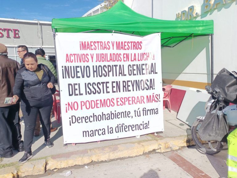 Ante la grave problemática que presenta el ISSSTE en Reynosa, maestros jubilados encabezaron una protesta pacífica para exigir, un nuevo hospital en Reynosa.